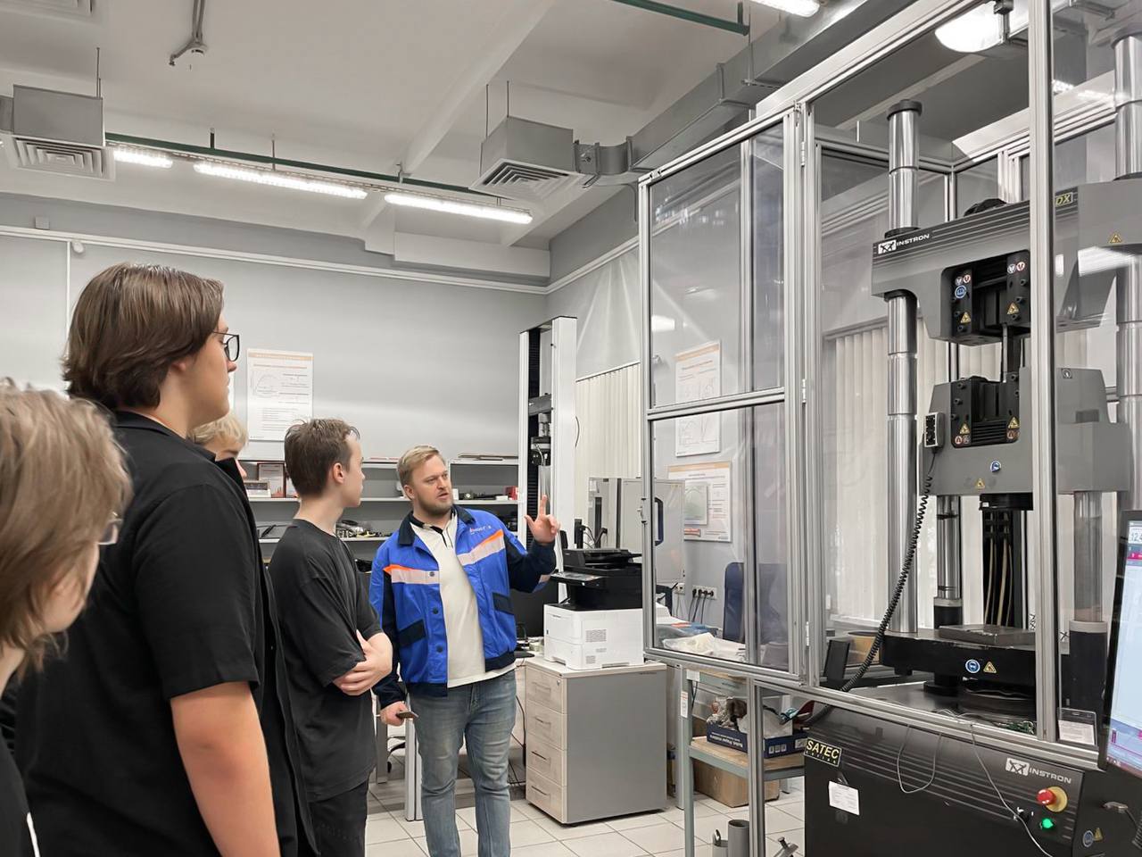 Одним из самых наглядных этапов экскурсии стала демонстрация механических испытаний. Ученики смогли наблюдать, как на специальном оборудовании образец металлической трубы подвергается нагрузке на разрыв для определения его предельных характеристик. Этот практический опыт позволил им не просто услышать о понятии «предел прочности», но и понять его физический смысл, а также осознать важность точных расчетов и строгого контроля в инженерном деле.