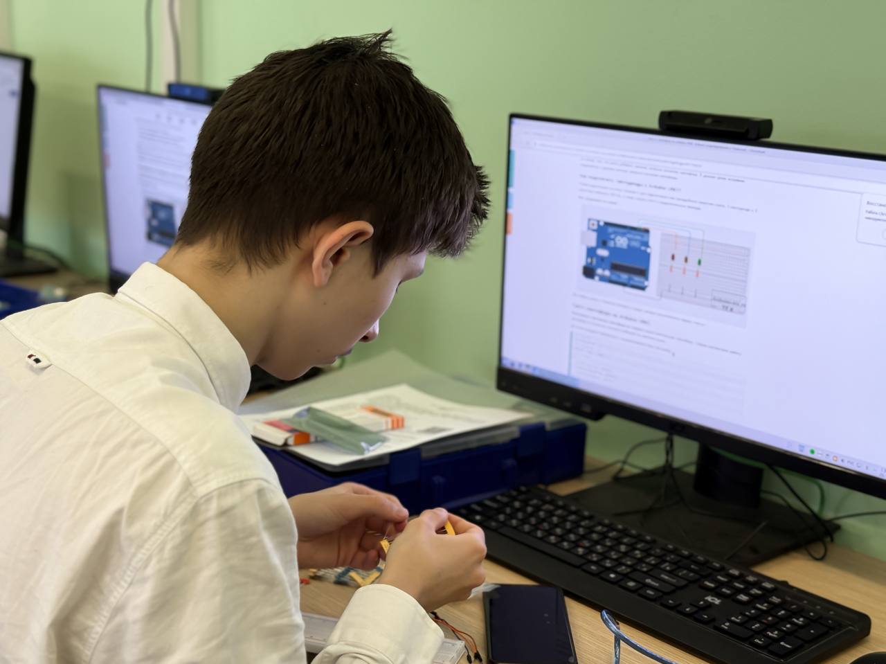 Первым серьезным заданием для ребят стала сборка и программирование работающей модели светофора на платформе Arduino. Проект требует не только аккуратного монтажа электрической цепи с использованием светодиодов и резисторов, но и написания управляющей программы, которая задает логику работы — последовательность и длительность горения каждого цвета.